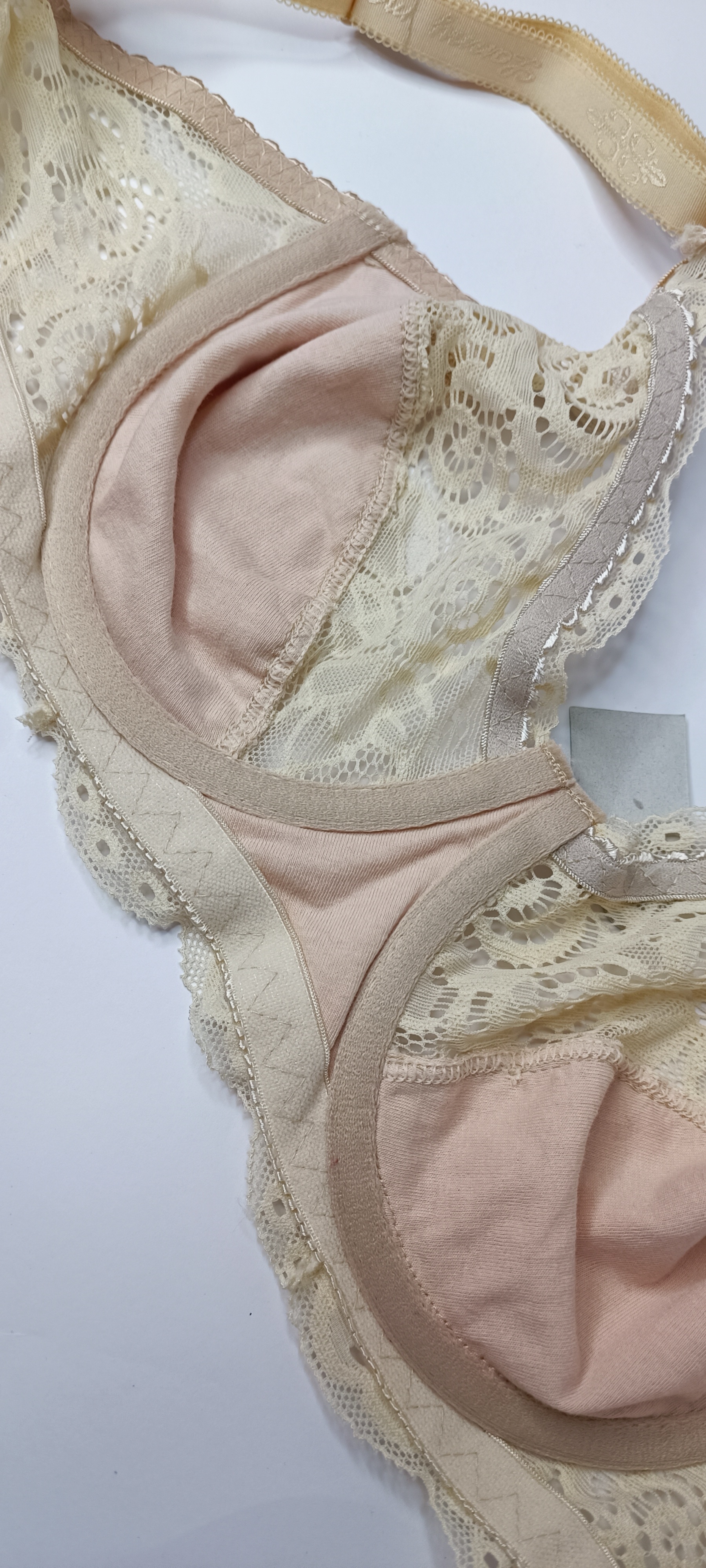 سوتین توری هارنس دار زنانه کرم و صورتی